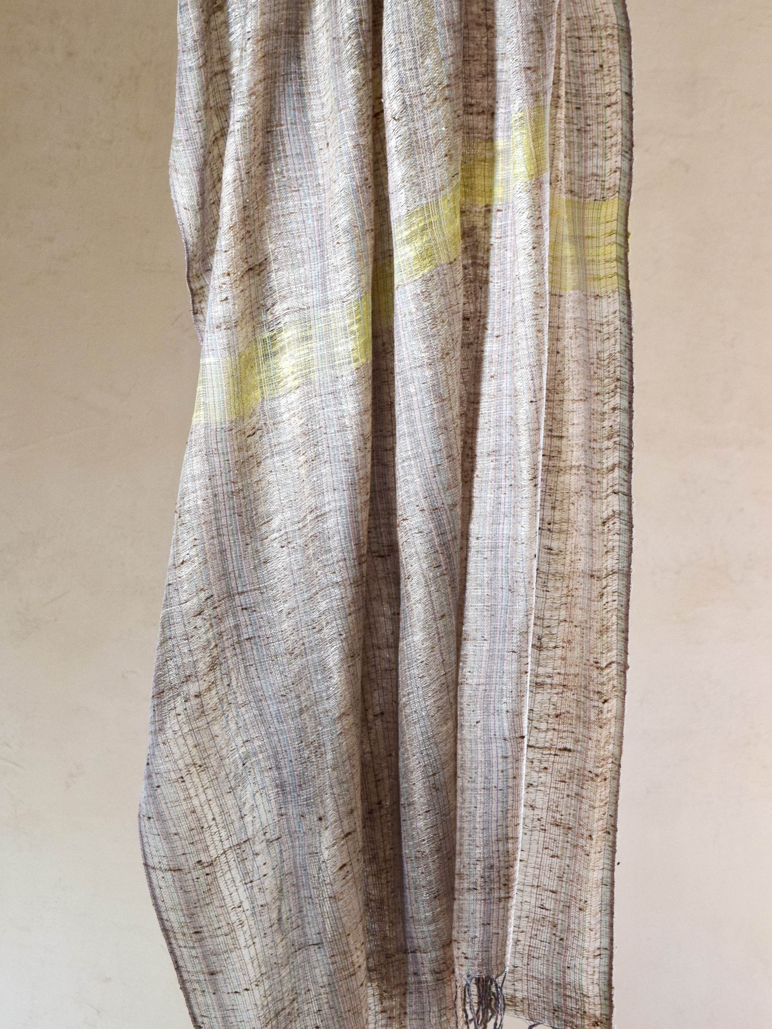 織り 『絹手紡ぎ真綿糸と、天蚕のきびそ糸、アタカス蚕の糸のからみ織り布』 『ゼンマイの糸と天蚕糸のからみ織布 no.2』 『ゼンマイの糸と天蚕糸のからみ織布 no.1』 『「もったいない」が詰まった絹手紡ぎ真綿織り布』 織り 整経そのⅠ 力織機 織りの原点 ▶創作ノート