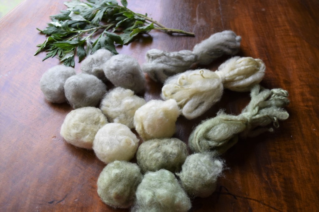 媒染液を変えることで、いろいろな色が楽しめます。淡い青緑がでた時は感動しました。