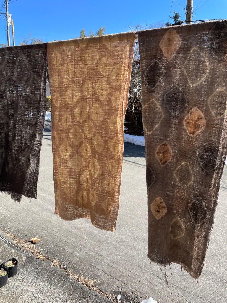 鉄媒染で憲法色という黒色、灰汁媒染で木褐色、蘇芳と併用して茶系の色に染めたりと、江戸時代には特によく使用された代表的な染料のひとつです。