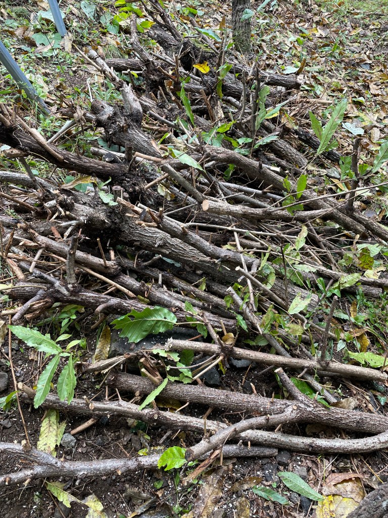天蚕飼育用のクヌギ畑の整備ででた、クヌギの木々。