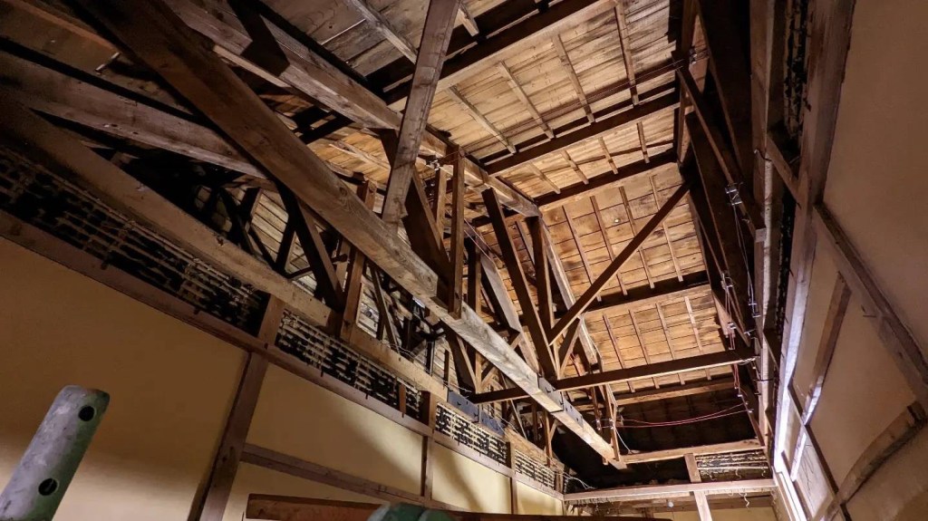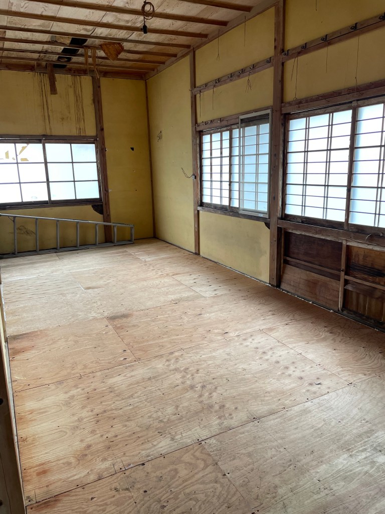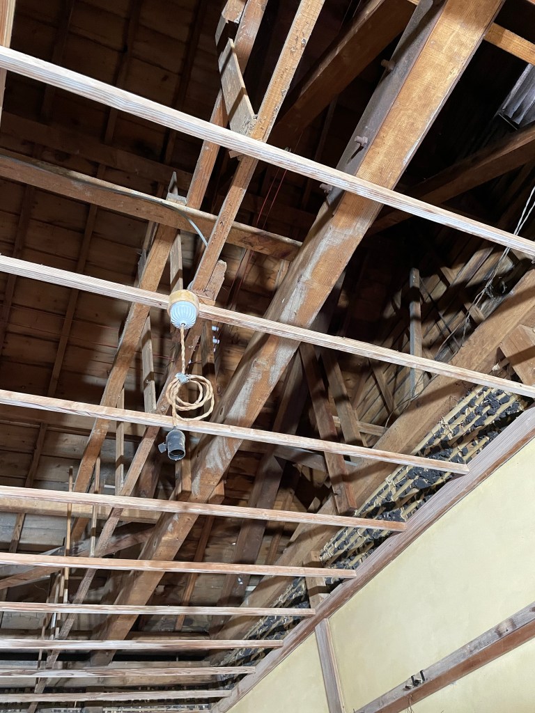 修理といっても、今ある天井を壊してオープンにしてしまうという大胆な計画です(笑)