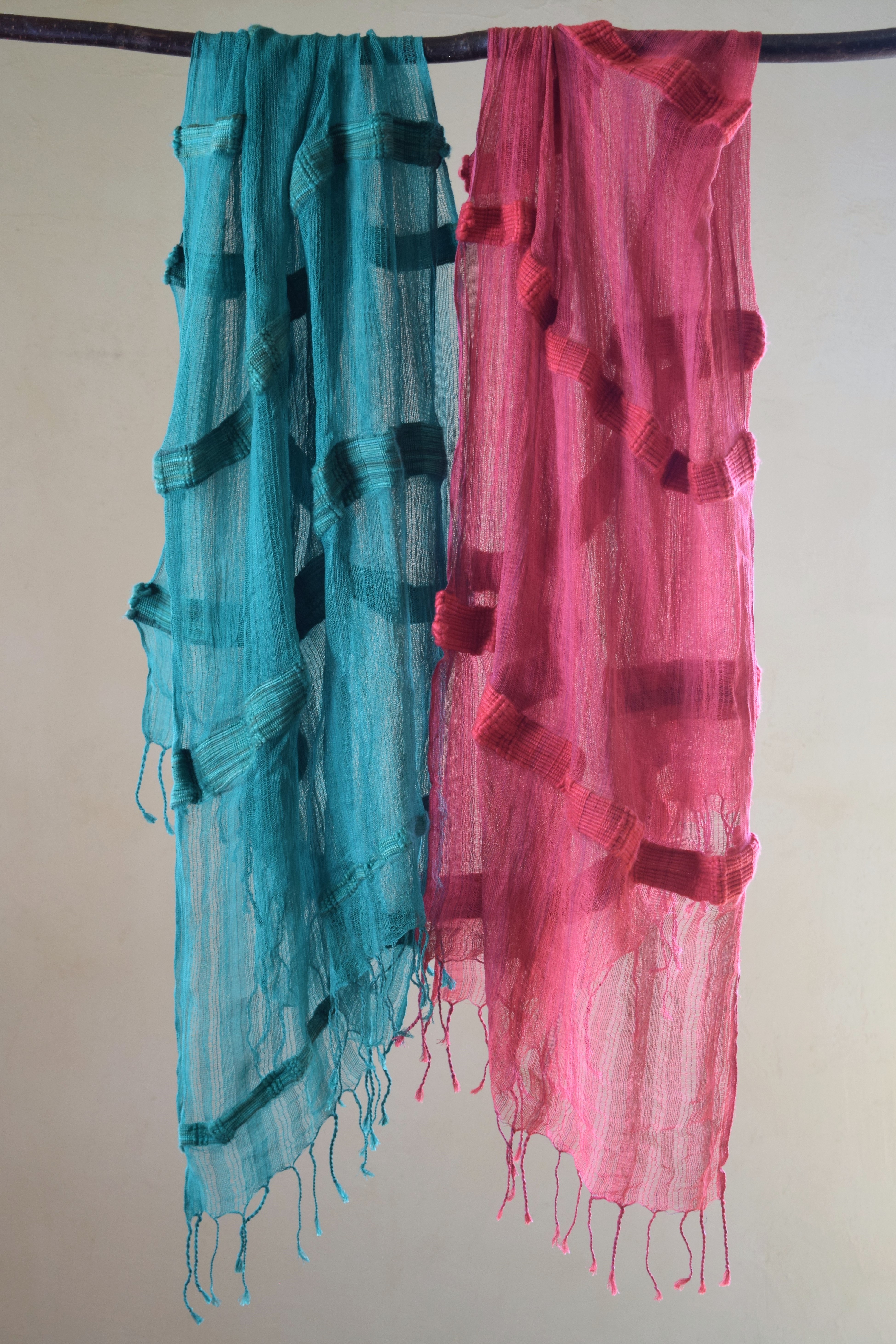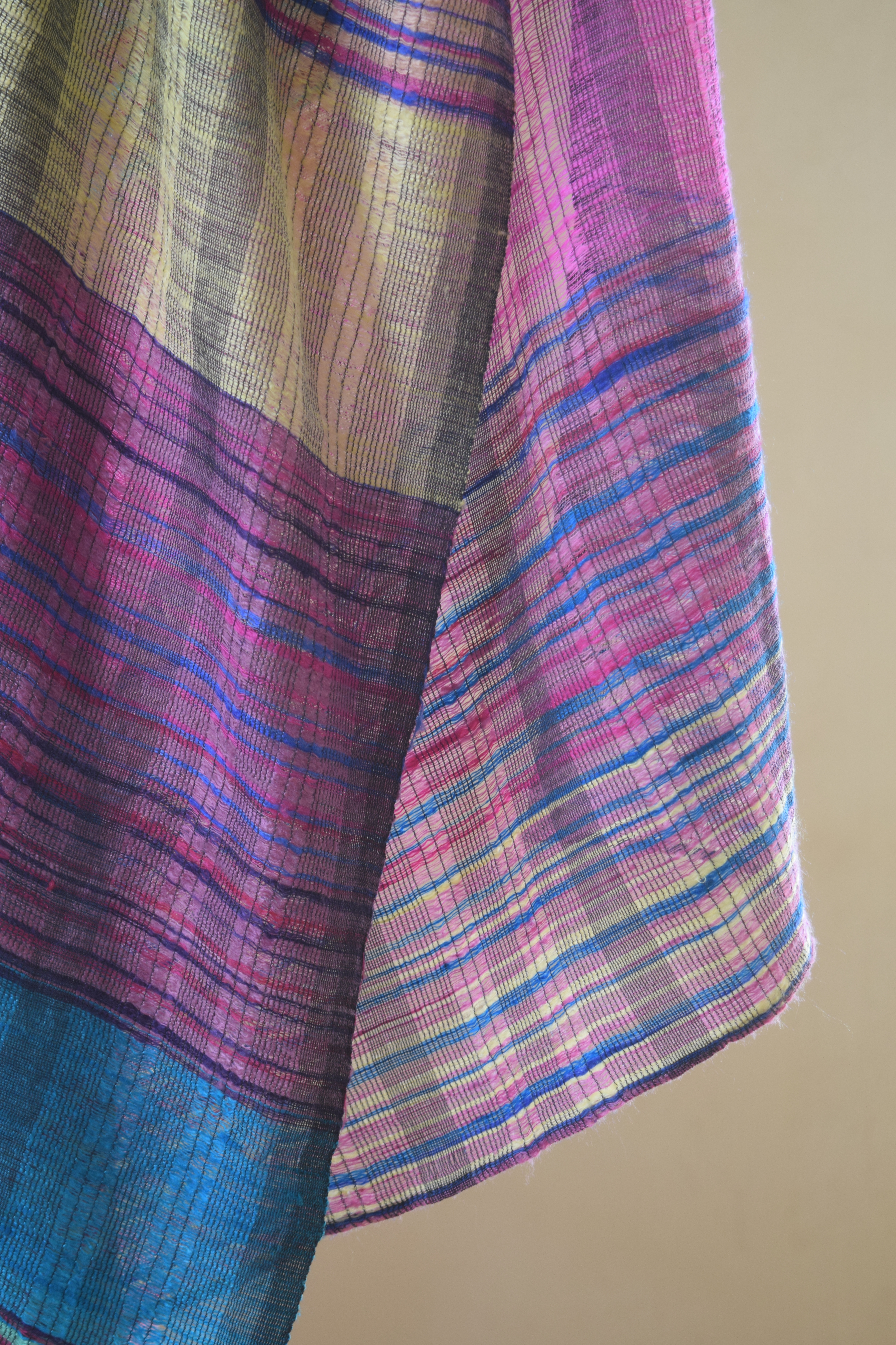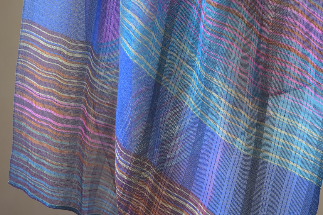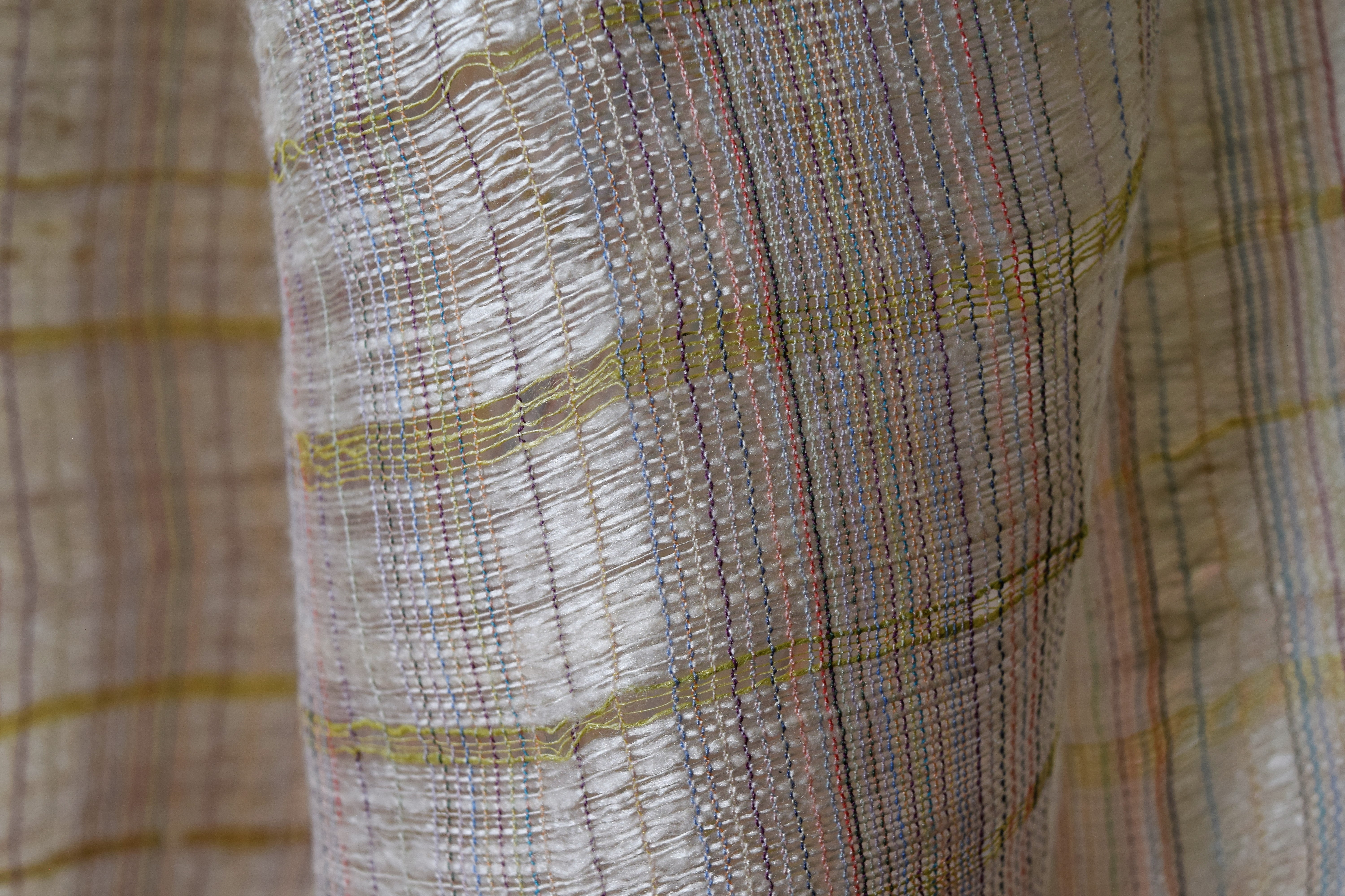 絹真綿紡ぎ糸と天蚕のからみ織り布