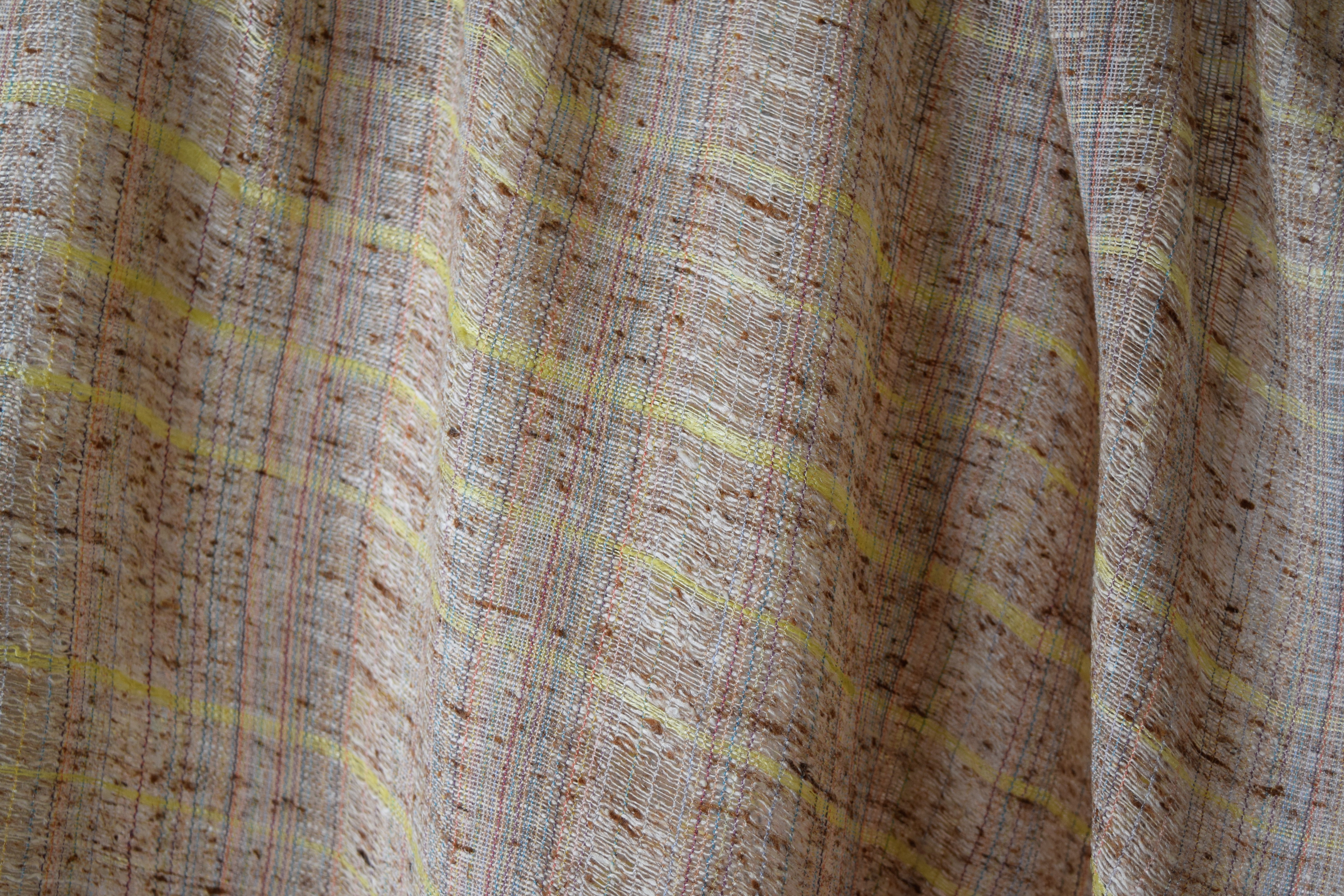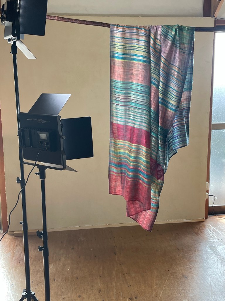 布の軽やかさであったり、真綿の包み込むような優しさ、そしてゼンマイや天蚕の野性的な素材感が伝わればと思います。