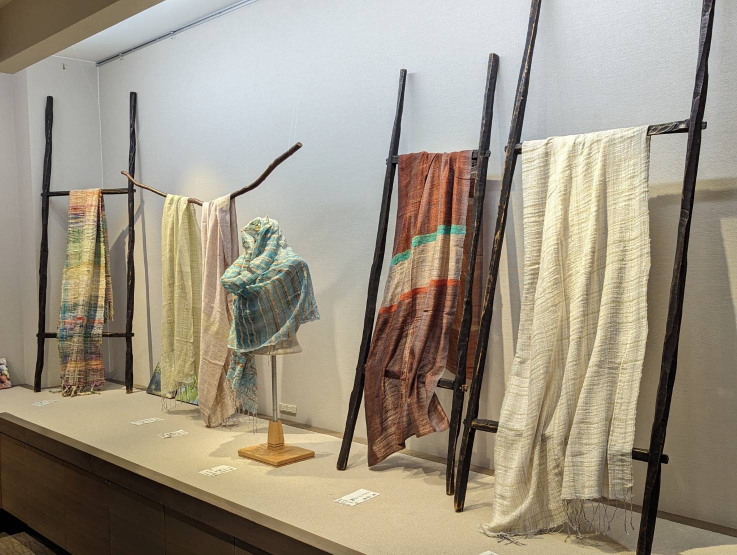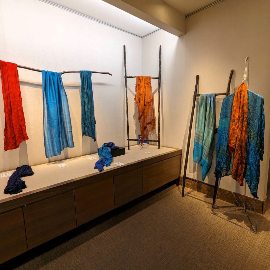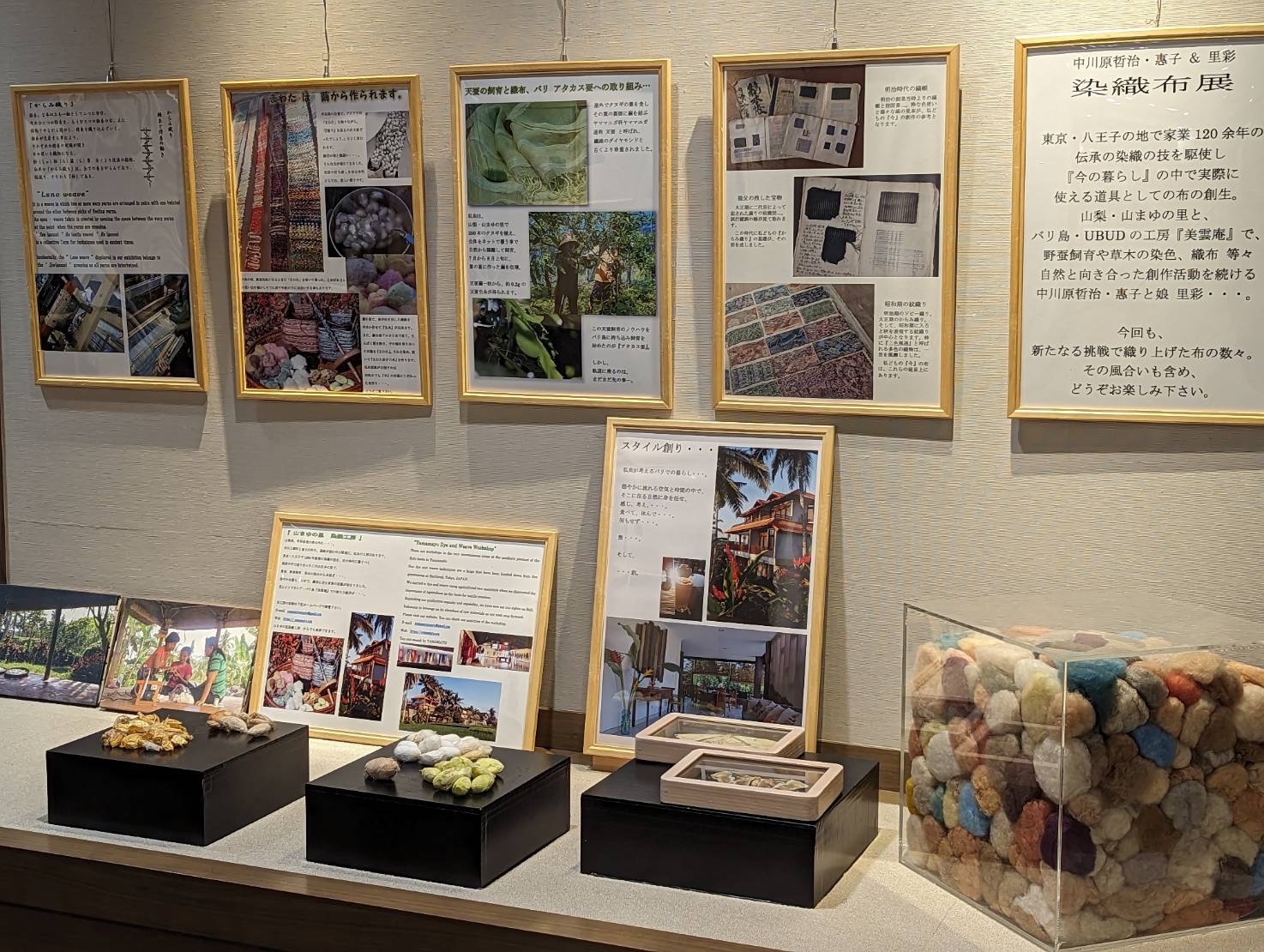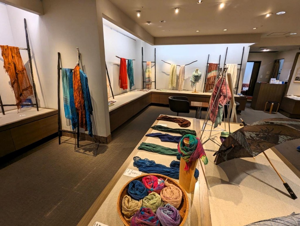 By: 山まゆの里染織工房 | yamamayu 27/09/202303/10/2023 exhibition | 作品展真綿、絹、織り、野蚕、蚕、weaving、天蚕、山まゆの里染織工房、広島、広島三越、染織、中川原里彩 染織布展 広島三越にて 広島三越 広島三越での染織布展が始まりました。.第6回中川原哲治・惠子と里彩 染織布展~自然からいただき織り上げた、心豊かな布~.9月27日(水)~10月2日(月)※最終日は午後5時閉場広島三越 7階 三越画廊 2000年に中国四国地方での最初の作品展開催が広島地元の F百貨店でした。十数回の開催を経て2014年からは三越でお世話になり、今回で6回目になります。広島とも四半期近いお付き合いです。.可部と云う古く天蚕飼育が行われていた地域があり、地域起こしの一環として、今も有志の方々が頑張っていらっしゃります。.半世紀以上前の中川原哲治と惠子の大学時代のクラブのメンバーが集ったり、と、何となく忙しい作品展になりそうです。.秋の色合いの布の数々を、どうぞご覧ください