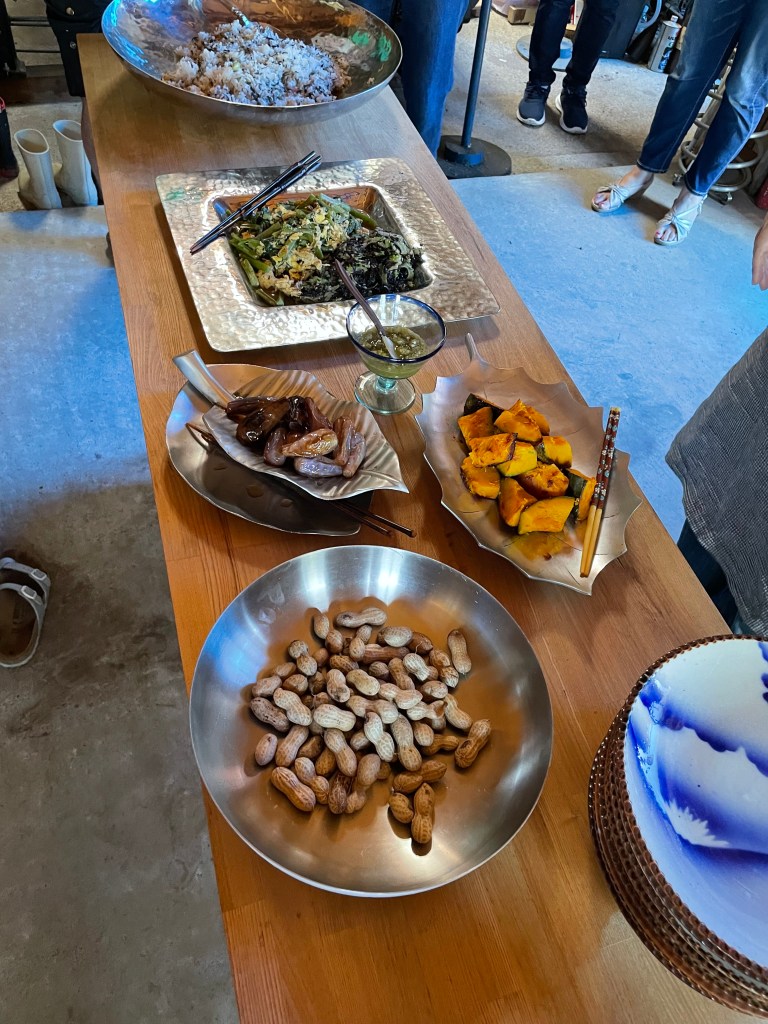 8月下旬に、染織教室の4回目を開催しました。前回フワフワにした真綿を糸に紡いでいきます。