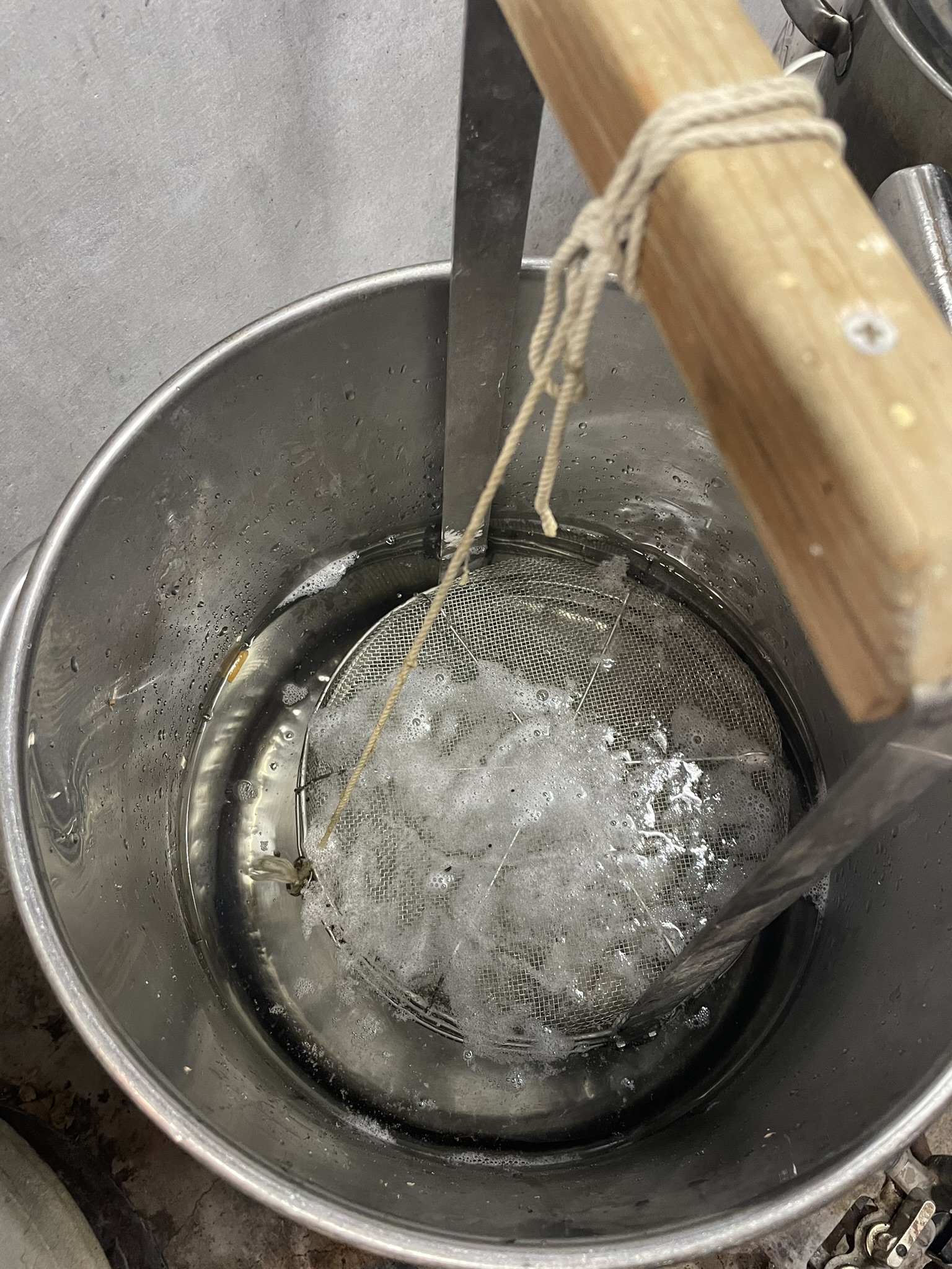 工房にある電動の糸繰り機は、強度のある天蚕の糸でも引けるようにと知人に開発してもらったので、小石丸のような繊細な糸を引くのには調整が難しいです。まだまだ課題ばかりの糸繰りですが、糸を作りながら答えがみえてきそうです。