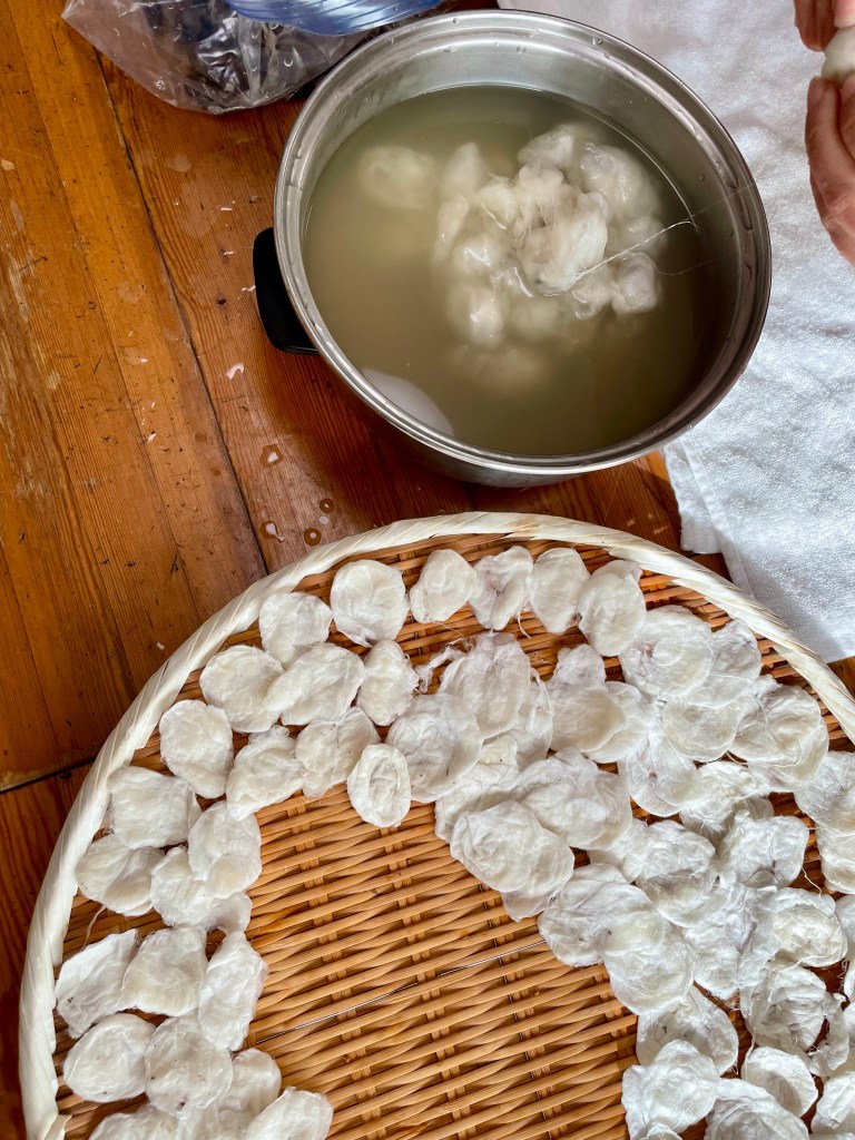 昨日、繭からの染め織り紡ぎワークショップを八王子のアトリエで開催しました。