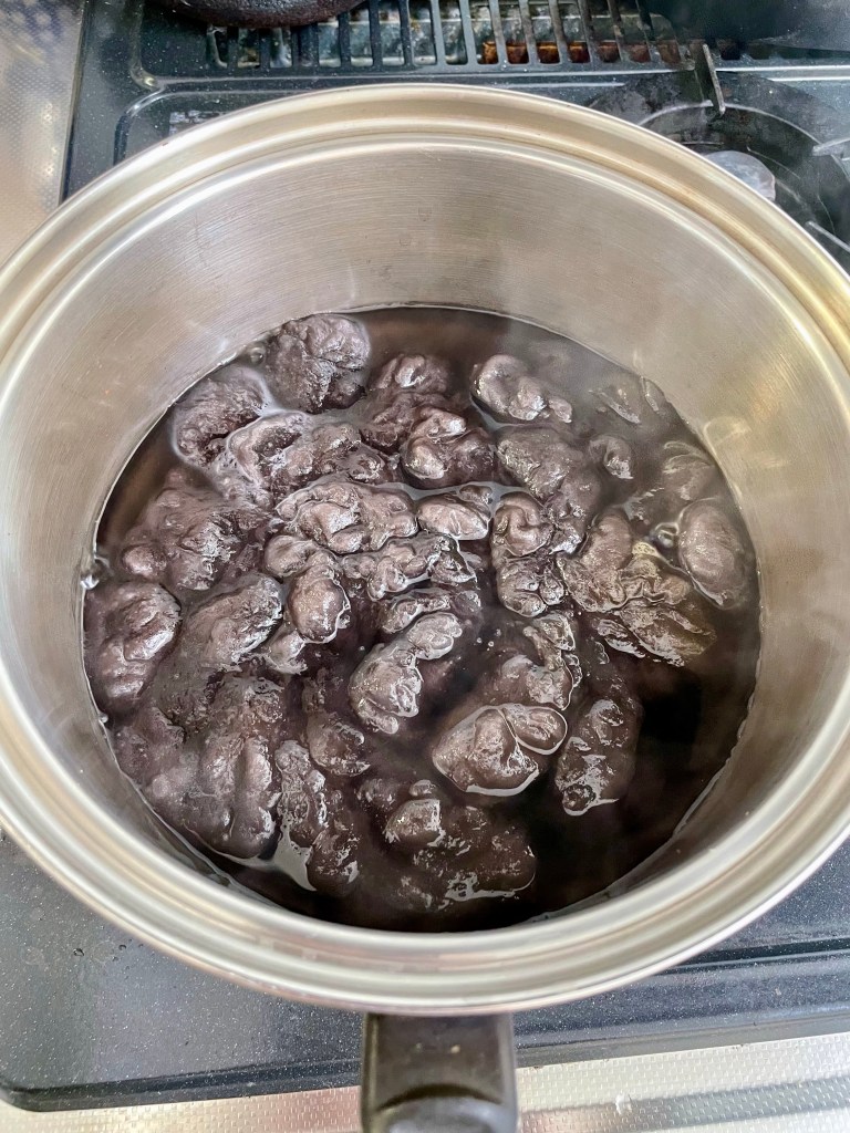 山梨の工房から運んできた、剪定ついでに切った梅の花が咲く前の2種類の枝で染液を作り、蛹出しをした繭の染色。