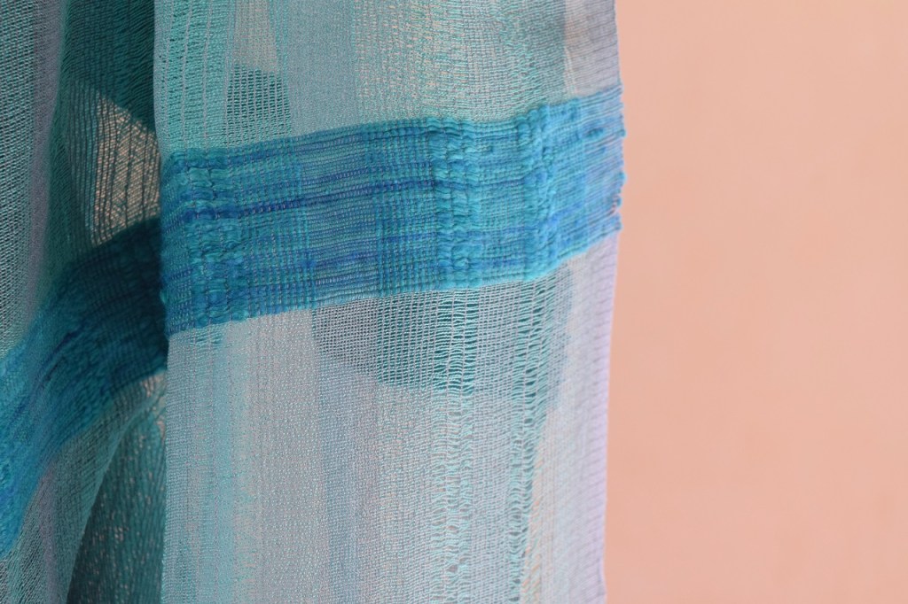 上質な絹を使用し、代々受け継がれてきたからみ織りという伝統的な技法で織り上げた絹からみ織り布(ストール) 。