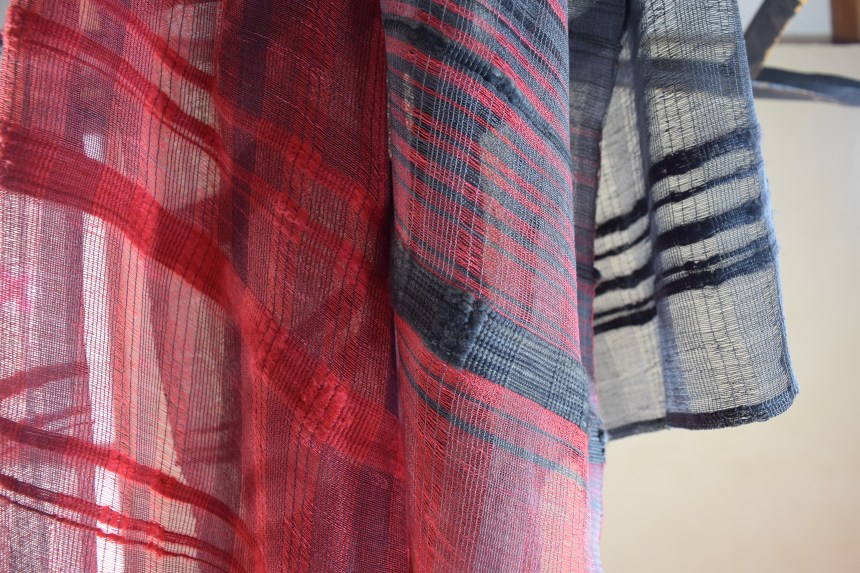 からみ織りは、糸のあいだに空気を含む織りです。