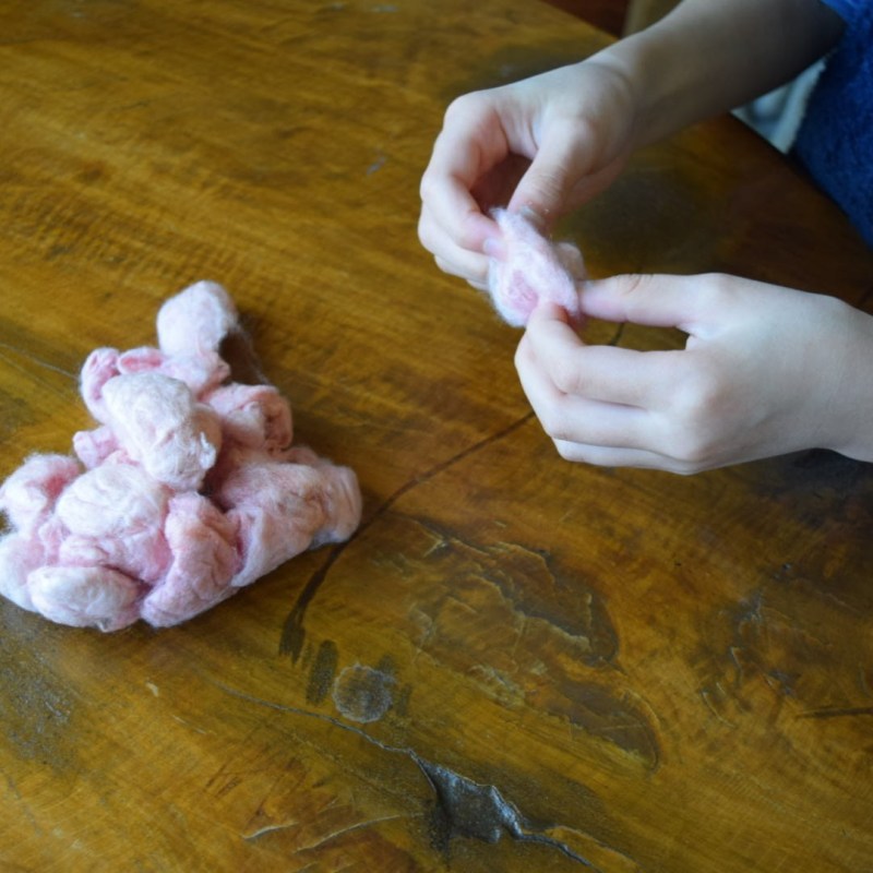 This page introduces an easy way to spin yarn from silk floss (mawata) without special tools. Designed for children—including those in special support classes—and beginners, this gentle method allows anyone to experience the joy of turning silk fibers into yarn safely and simply. It is also suitable for workshops, schools, and families who want to learn the first step from cocoon to textile.