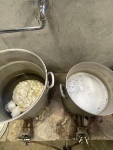 真綿づくりは、繭を煮るところから始まります。