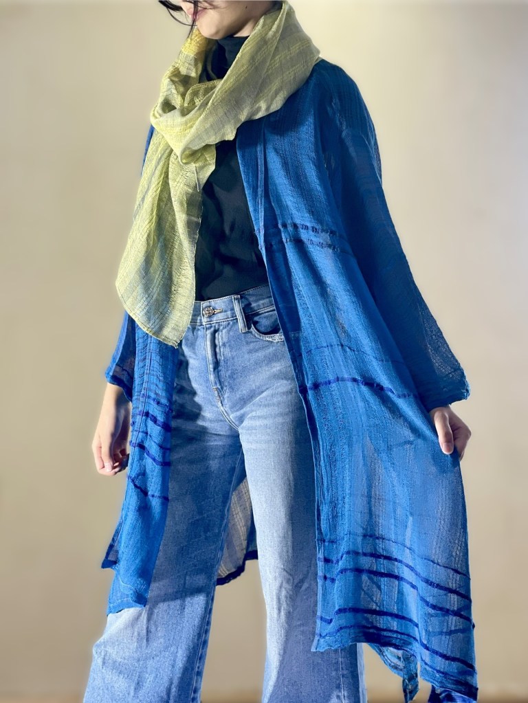 Hand-dyed, hand-spun, and handwoven in our Yamanashi studio.
