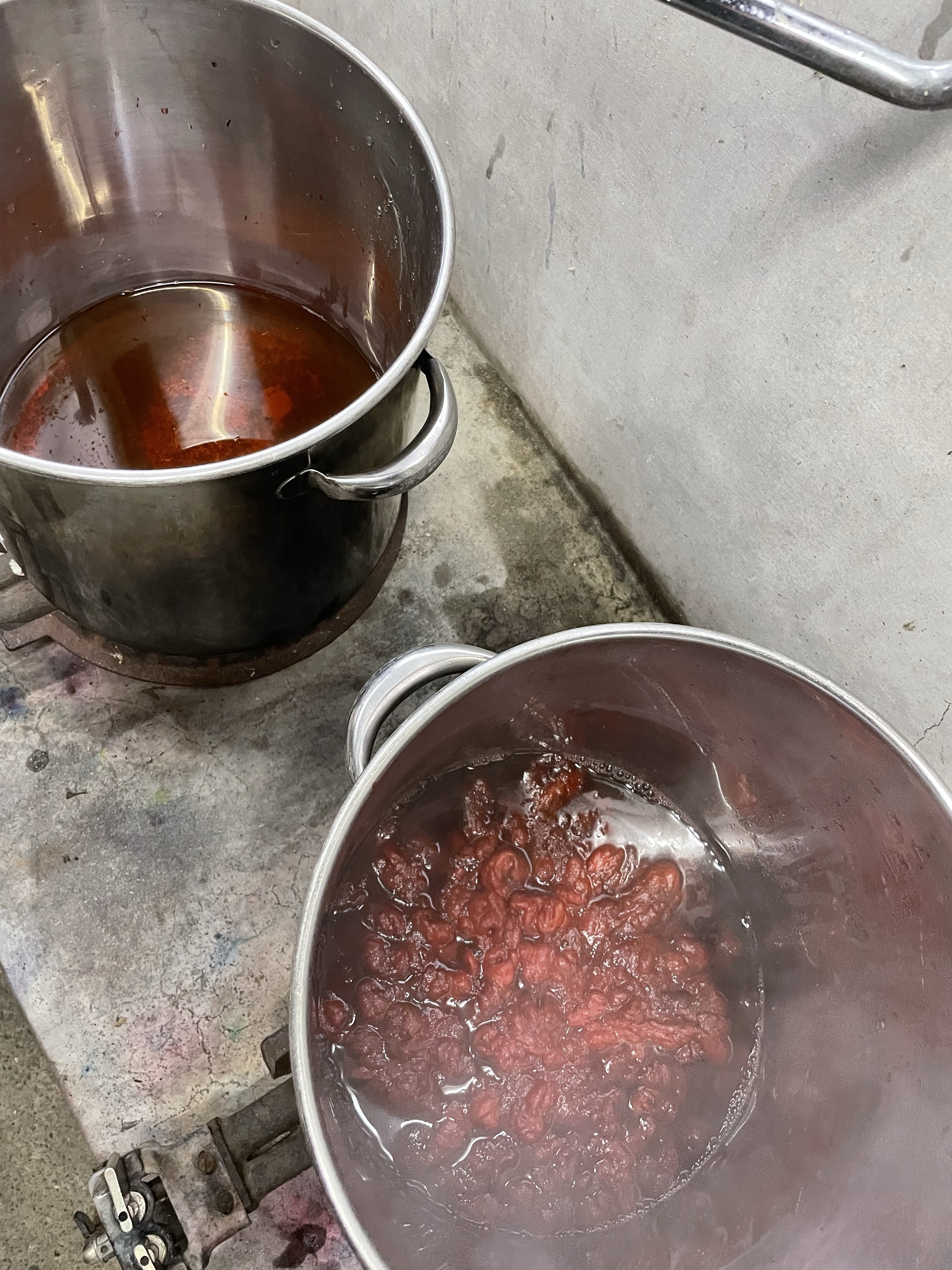 媒染(mordant) 繊維と色素の結びつきを助ける工程。アルミ系や鉄などを目的に応じて使用。