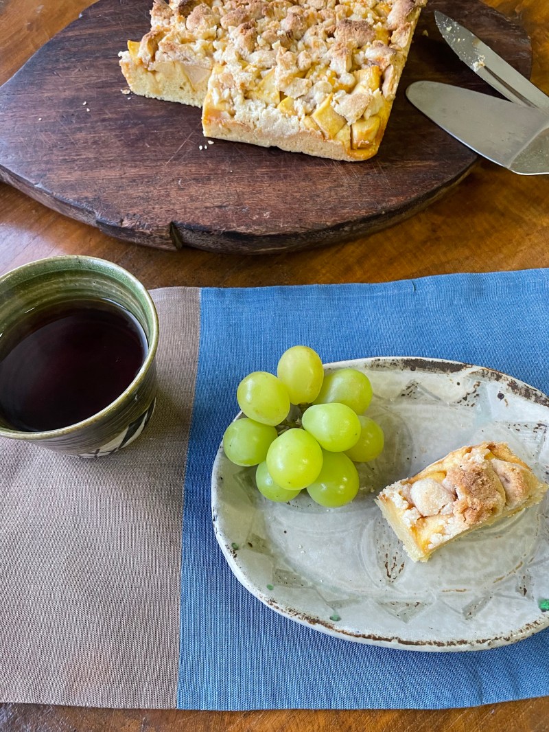 最近よく作る、米粉のりんごクランブルケーキのレシピです。