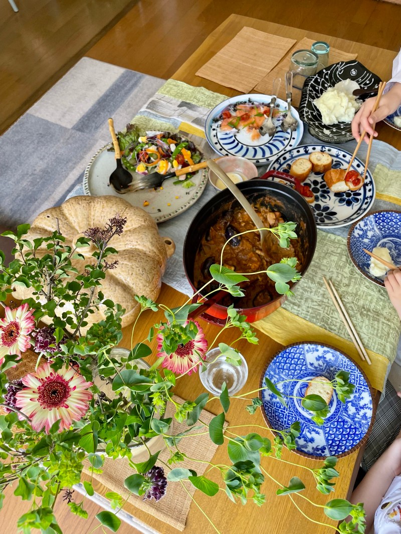 ゲストを招いてのお食事会。バリ島ワークショップの思い出話に花が咲きました。